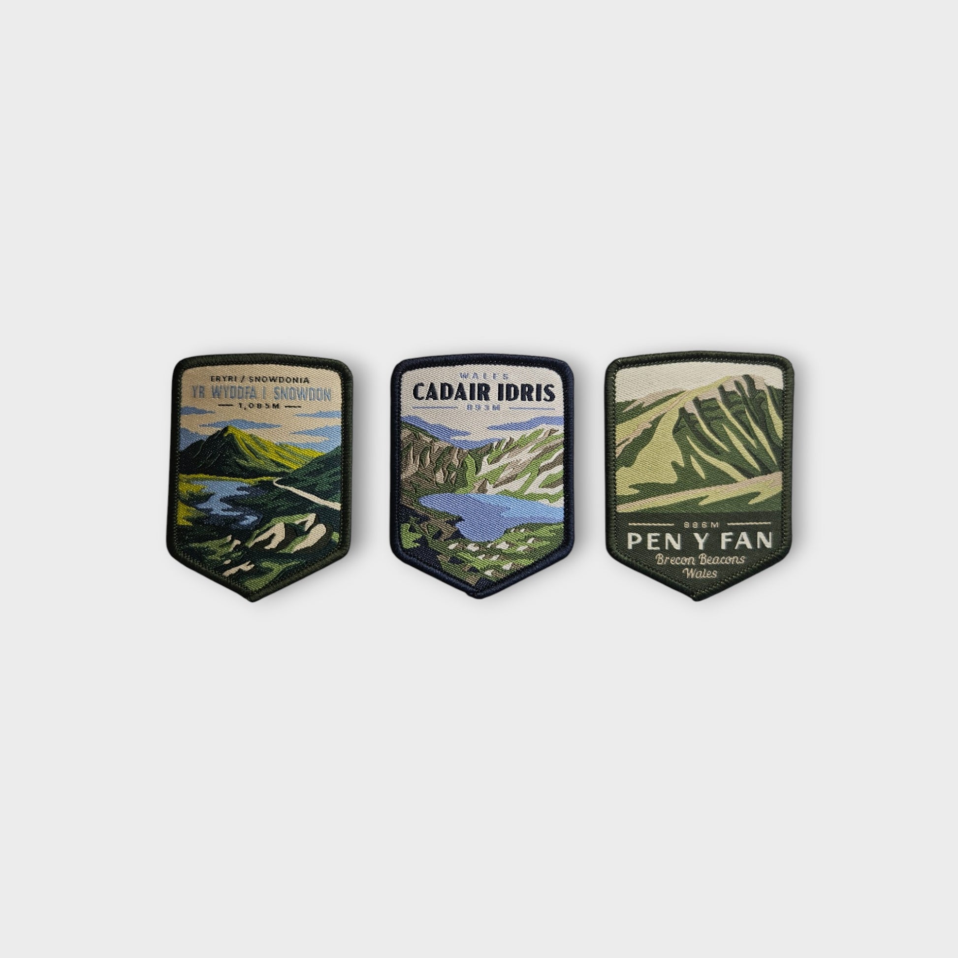 Welsh Three Peaks iron-on patch set to celebrate completing Snowdon, Cadair Idris and Pen y Fan.